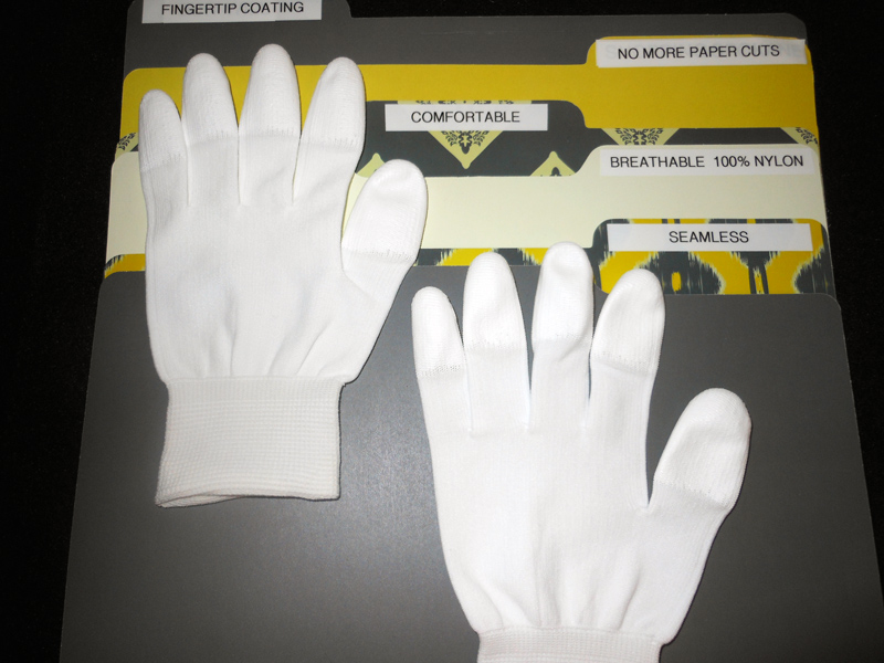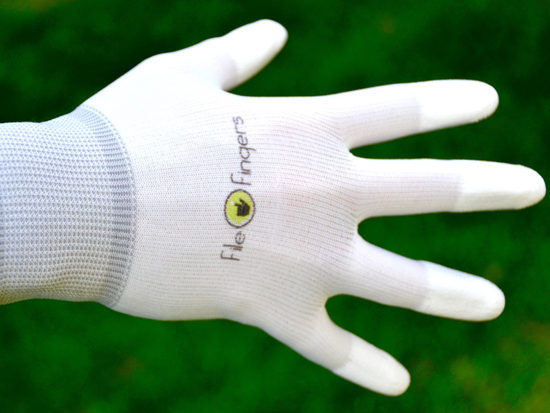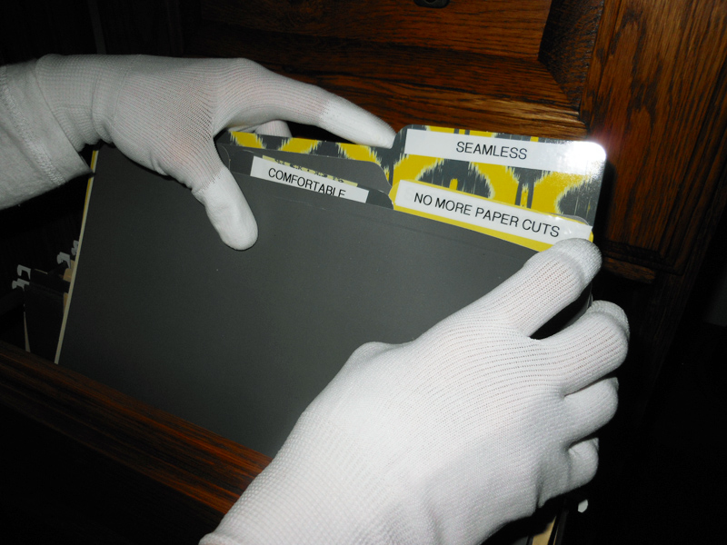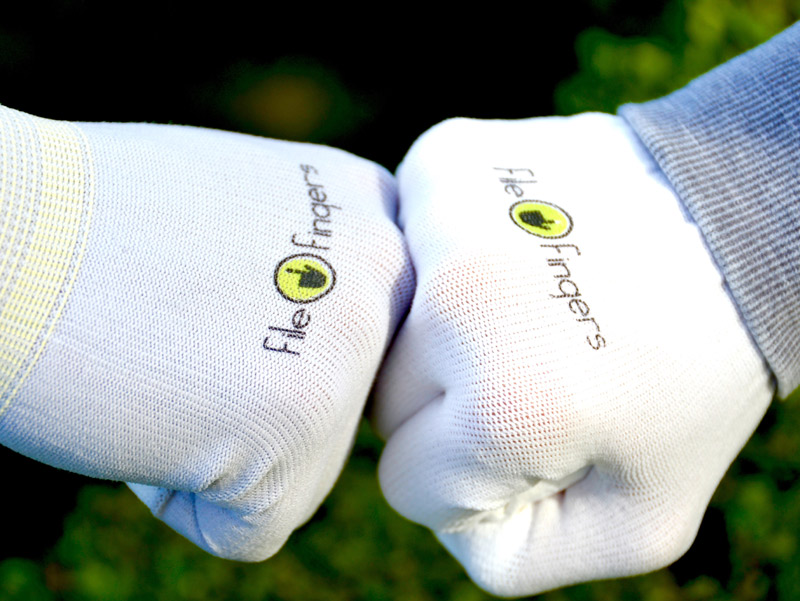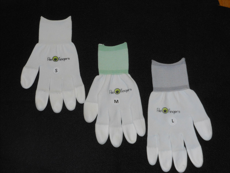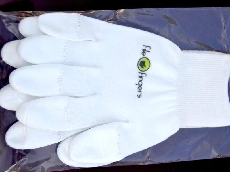 © 2017 FileFingers, Santa Monica, CA. FileFingers are the office essential that make great gifts too! FileFingers filing gloves are the best gloves to avoid paper cuts and protect your hands while making it even easier to file, handle paper and all kinds of home and office equipment. These gloves are the greatest gloves for typing, filing, handling paper, supplies and even dialing your cell phone. Made from flexible, thin, breathable nylon fabric, these filing gloves are so comfortable, you can wear them all day with ease. They also have special grip tips that make it extra easy to feel and manipulate paper, supplies and equipment -- anything in your home or office. In fact, FileFingers feel even better than your bare hands. FileFingers filing gloves are great for clerks, cashiers, librarians, home office workers, post office workers, crafters (knitting, quilting, crocheting) and anyone who works with paper and equipment. They are form-fitting, comfortable and come in a neutral white, which is perfect for both women and men. |
